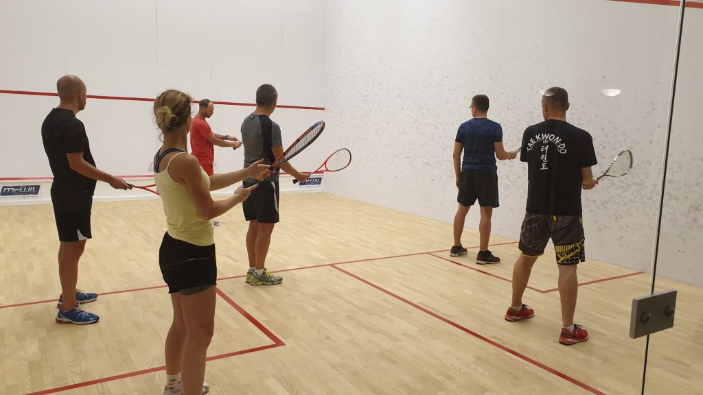 Warto również wspomnieć o squashu, który przypadł do gustu naszym obozowiczom, niezależnie od wieku. Trenowaliśmy w 4, 5 osobowych grupach przez godzinę pod okiem instruktora. Po 2 pierwszych dnia było tylu chętnych, że musieliśmy wynająć kort na dodatkowe godziny. Po takim oblężeniu można się spodziewać, że to nie był nasze ostatnie spotkanie z tym sportem.